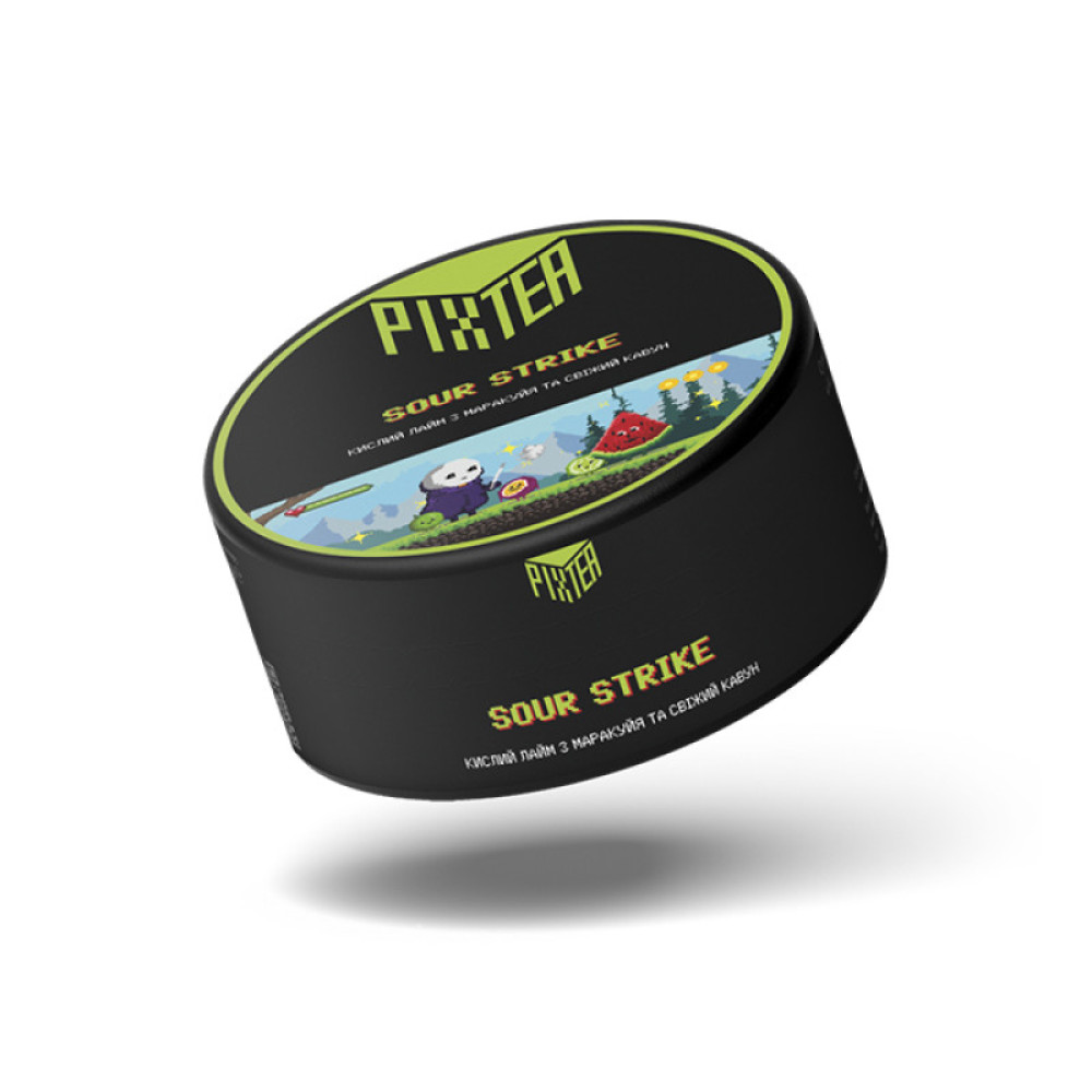 Безнікотинова суміш Pixtea Sour Strike (Кавун, Лайм, Маракуя) 250 грамів -це яскравий мікс із соковитого кавуна, свіжого лайма та ароматної маракуї.