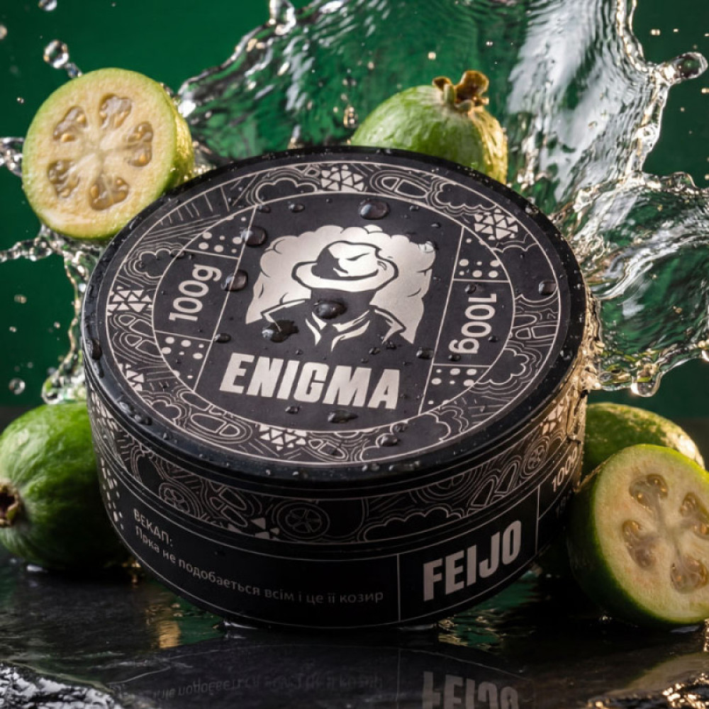 Тютюн Enigma Feijo (Фейхоа) 100 грамів - це екзотична фейхоа з легкою тропічною свіжістю. М’який, ароматний та максимально освіжаючий смак, що розкривається приємною солодкою кислинкою. Ідеальний вибір для тих, хто шукає незвичайний фруктовий мікс із легким шлейфом прохолоди.