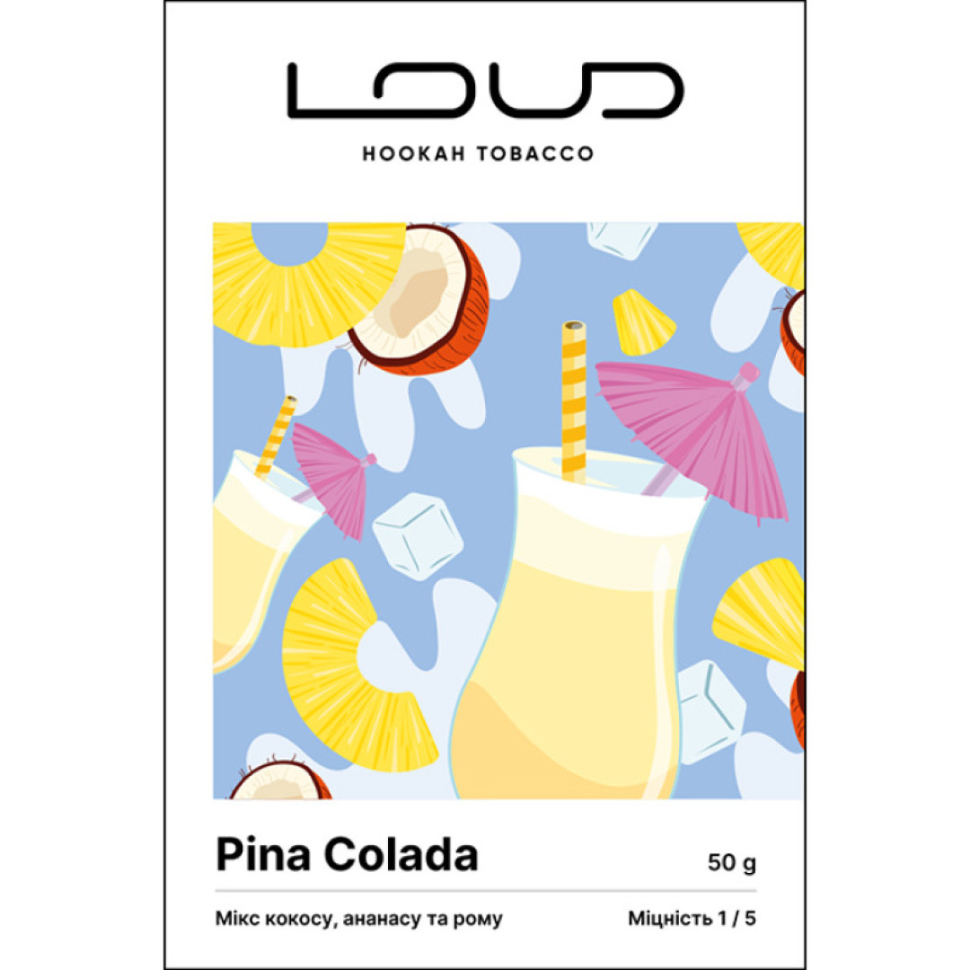 Тютюн Loud Light Pina colada (Піна Колада) 50 грамів - це тютюн для кальяну, який перенесе вас у незабутню подорож на райський пляж. Його солодкий та освіжаючий смак віддзеркалює спокій та тепло тропіків, даруючи відчуття безтурботного відпочинку та єднання з природою.