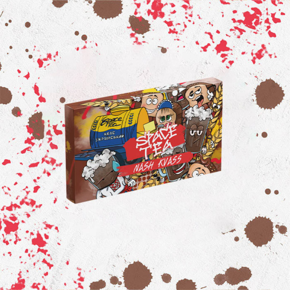Безнікотинова суміш Space Tea Nash Kvass (Наш квас) 40 грамів - починається з ноток чорного чаю, які швидко змінюються на терпкі нотки солоду та хмелю. Потім настає хлібний аромат, який надає суміші завершеності та робить її дуже насиченою.