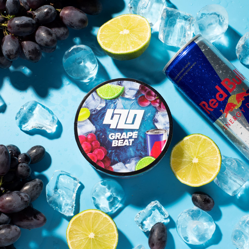 Тютюн 420 Classic Frost Line Grape beat (Енергетик, Виноград, Лайм) 100 грамів - це яскравий мікс із характером, що поєднує вибухову енергію напою з насиченою солодкістю темного винограду та свіжим цитрусовим акцентом лайму.