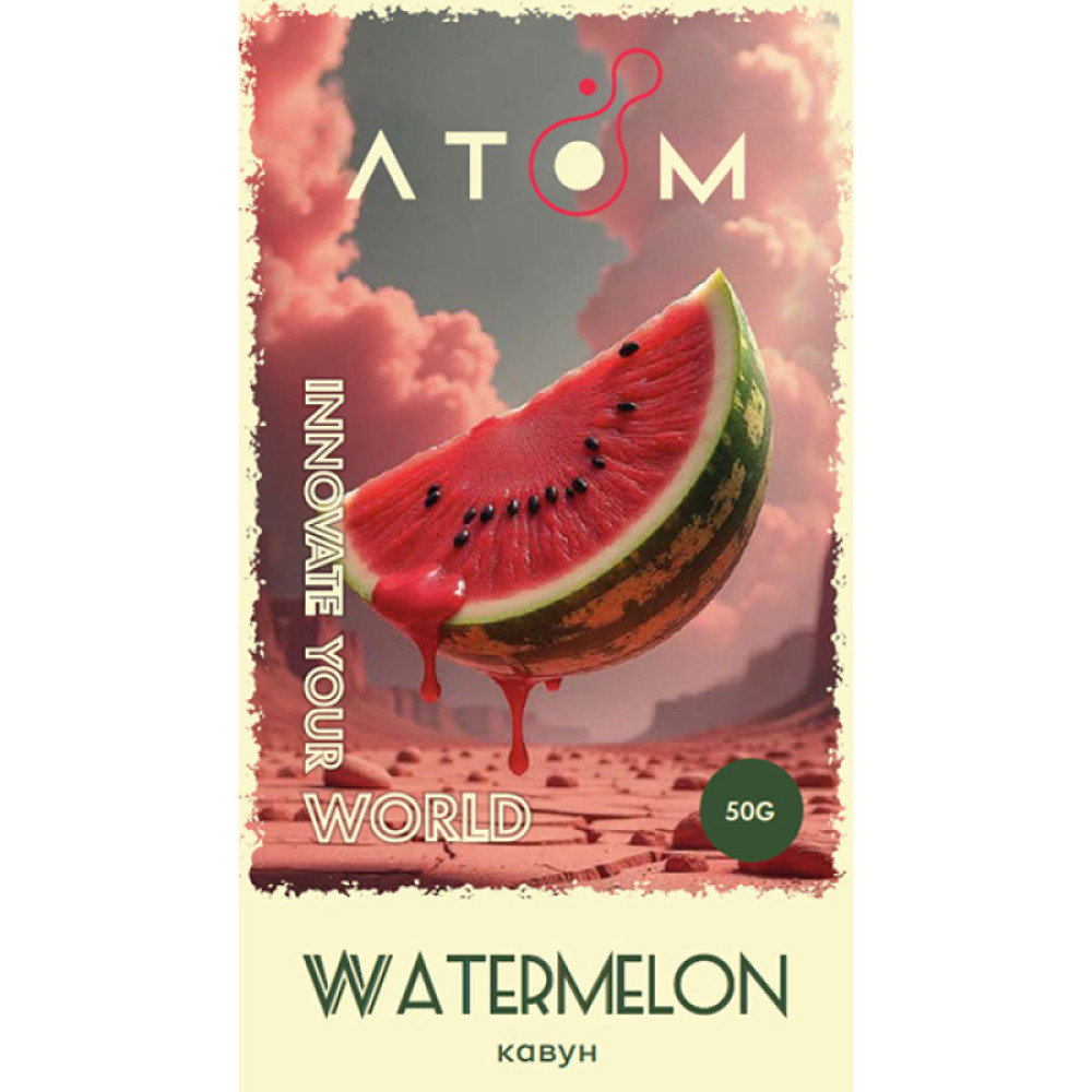 Тютюн Atom Watermelon (Кавун) 50 грамів - Насолоджуйтесь літньою свіжістю з тютюном Atom Watermelon. Яскравий, солодкий смак стиглого кавуна з легкими відтінками свіжості подарує вам незабутні враження від куріння кальяну.